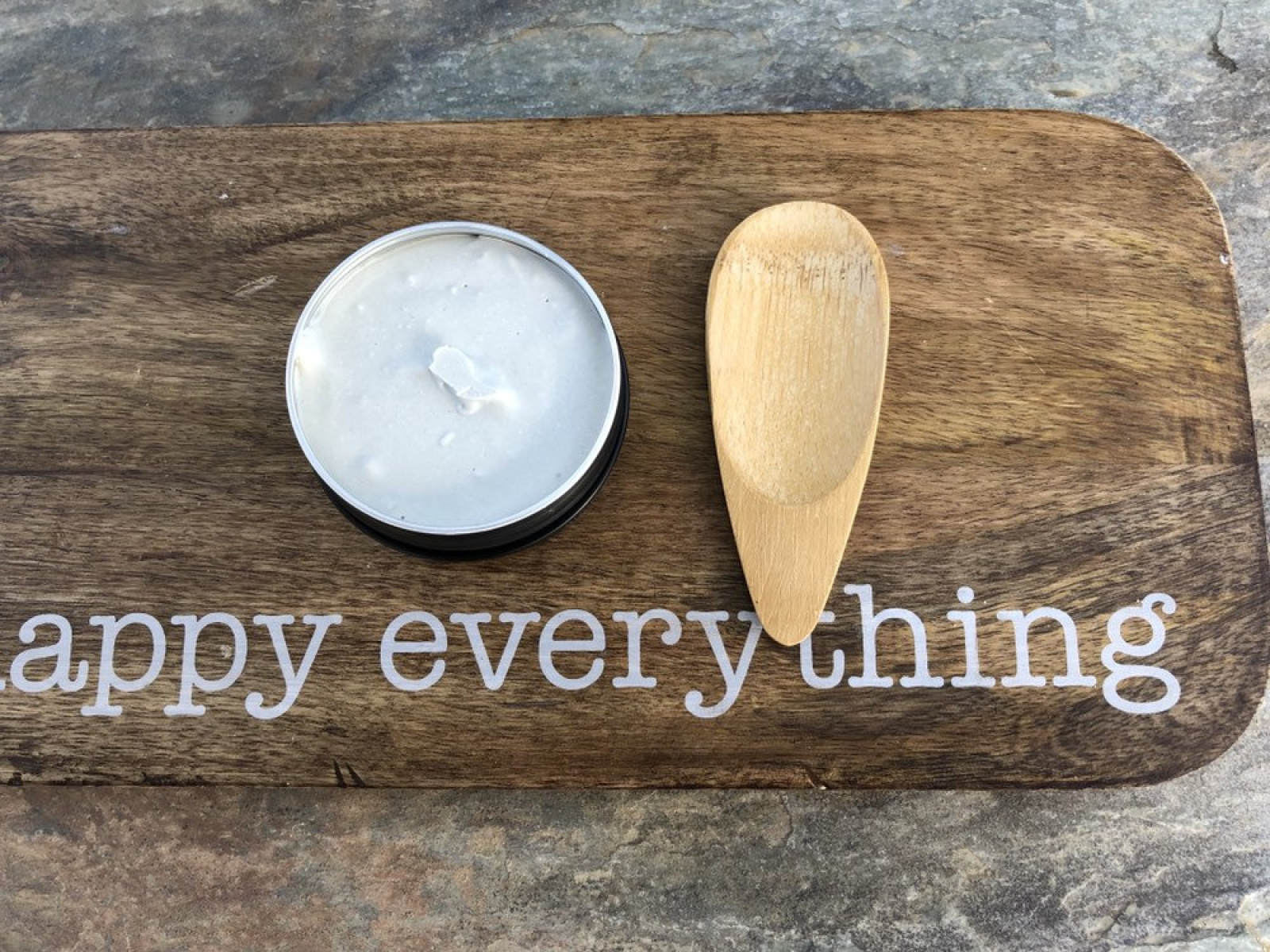 Ingredients: Cocos nucifera (Coconut) Oil, Simmodsia Chinensis (Jojoba) Oil, Cetearyl Olivate, Sorbitan Olivate, Cetyl Alcohol, Steric Acid, Zinc Ricinoleate, Solum Diatomeae ( Diatomaceous earth), bentonite clay, Arrowroot, Magnesium Hydroxide, Zinc Oxide, preservative, fragrance, sea buck thorn, citric acid.