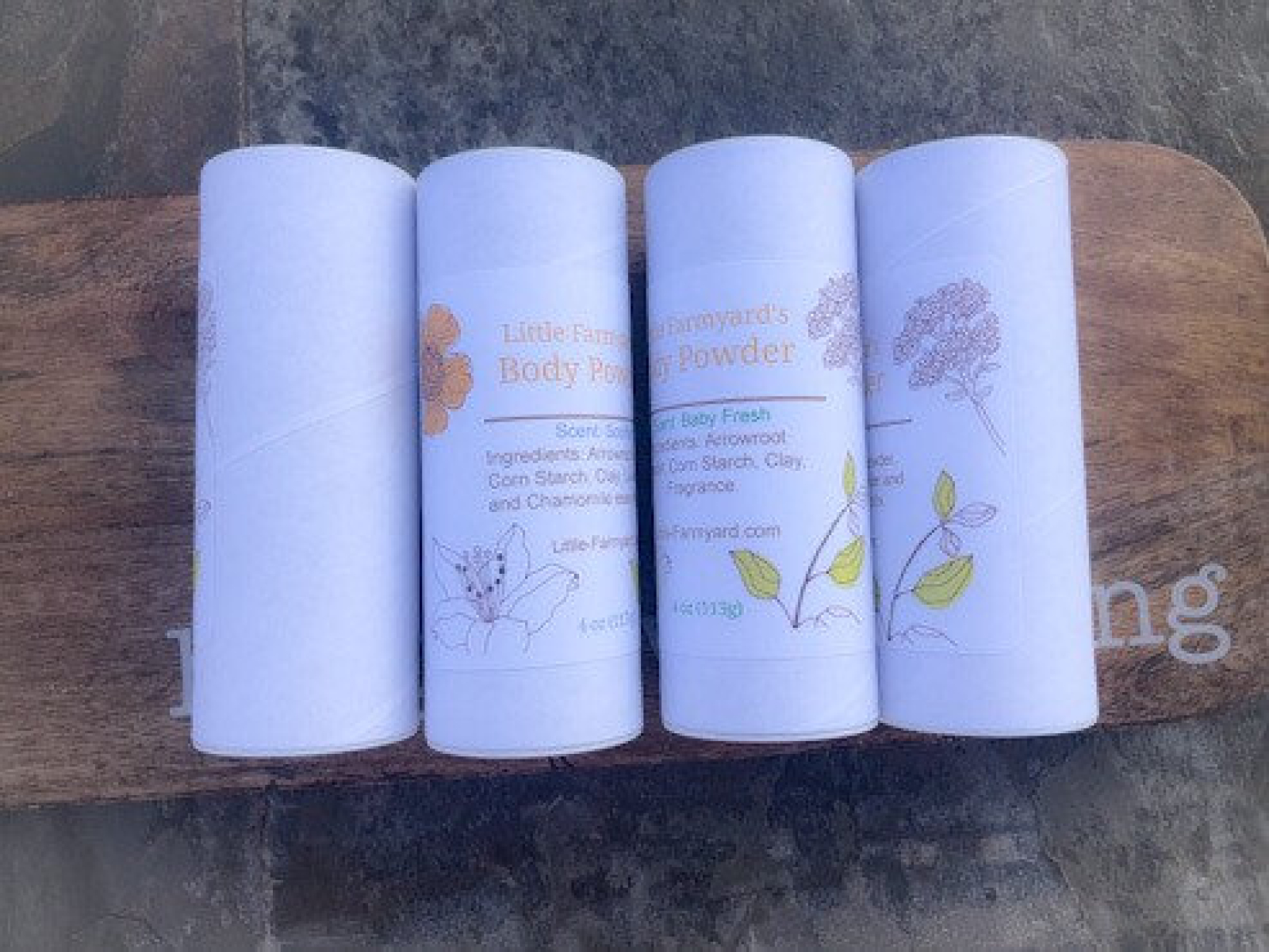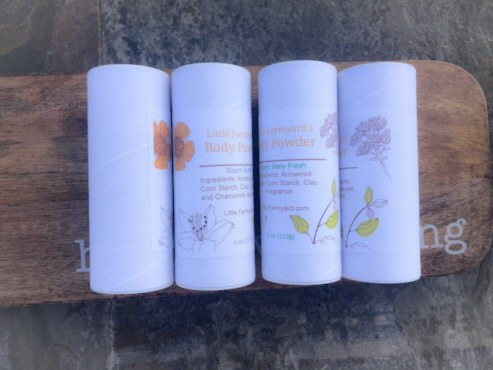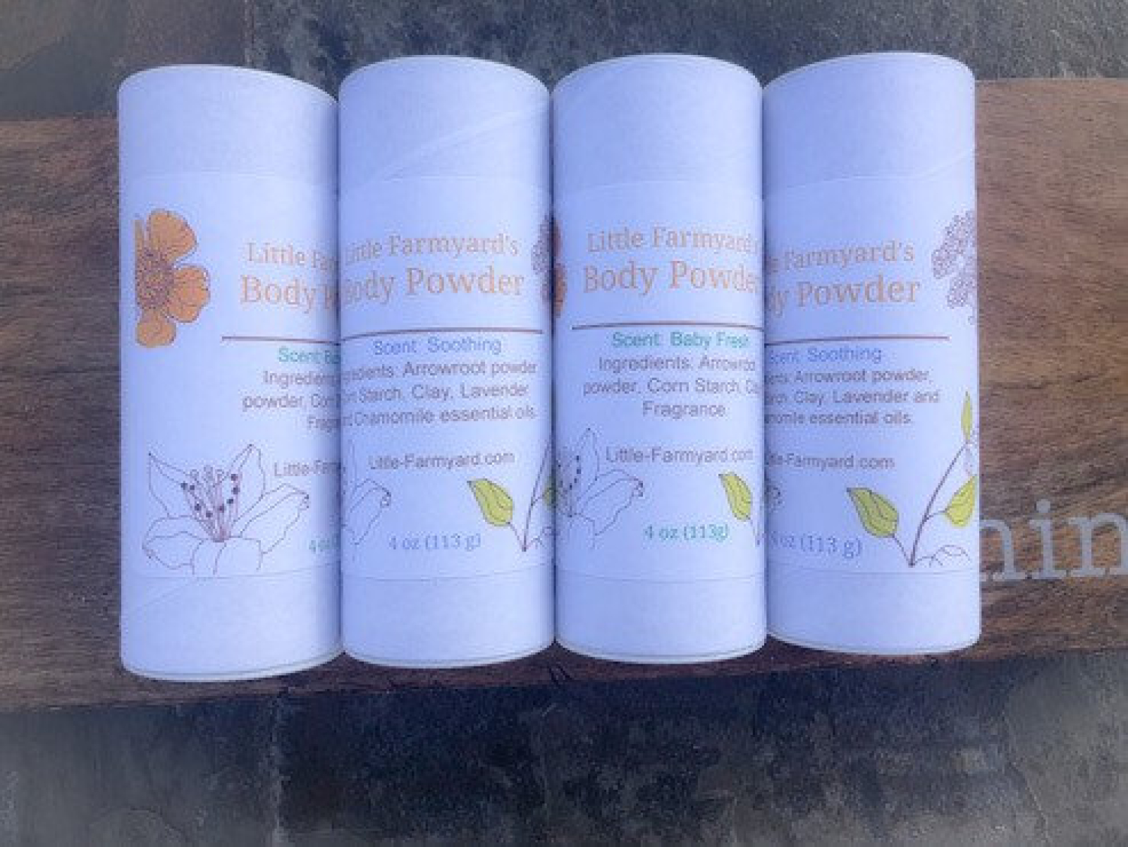 I love a good dusting of body powder after a bath:) This body powder is made of simple ingredients : Arrowroot, Cornstarch, Clay and your choice of Scent.